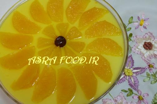 آب سرد را توی یه فنجان بریزید و پودر ژلاتین رو روش بپاشین و روی کتری در حال جوش بذارین تا ژلاتین حل بشه.سفیده تخم مرغ رو با هم زن بزنید تا پوک بشه نصف شکر روکم کم به سفیده اضافه کنید و هم بزنید تا سفت وسفید شود.زرده تخم مرغ رو با کمی وانیل و شکر بزنید تا کرم رنگ بشه.چند قاشق از آب پرتقال رو خامه رو با چند قاشق از آب پرتقال رقیق کنید.بقیه آب پرتقال رو با ژلاتین که حل کردیم مخلوط کنیدو به زرده تخم مرغ اضافه کنید.خامه رو داخل زرده تخم مرغ بریزید هم بزنید.بعدسفیده رو در دو نوبت اضافه کنید و به صورت دورانی هم بزنید مایع آماده شده رو داخل ظرف مورد نظرتون بریزد.ظرف رو چند بار به آرامی روی میز بزنید تا حباهای اون خارج بشه.روش سلفون بکشید و داخل یخجال قراربدید تاخودش روبگیره.
