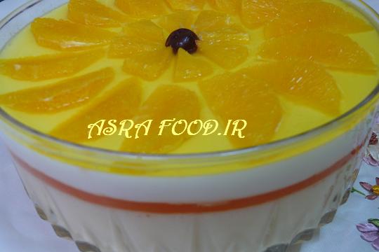 شیر و ژلاتین و شکر رو مخلوط کرده روی گاز بگذارید و دایم هم بزنید تا شکر و ژلاتین حل شود به محض داغ شدن از روی حرارت بردارید و کمی وانیل اضافه کنید وقتی کمی خنک شد خامه را اضافه کرده و مخلوط کنید.وقتی ژله پرتقال خودش رو گرفت کرم شیر رو روی اون بریزد.