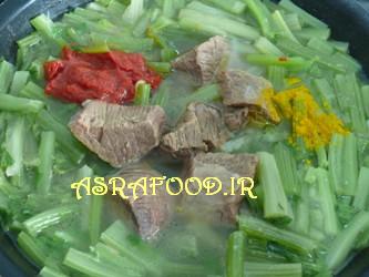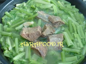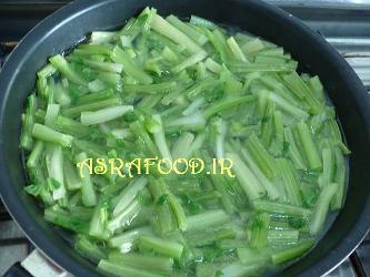 کرفس رو با کمی آب بگذارید نیم پز بشه. اگه با آب گوشت بپزید صد البته خوشمزه تر خواهد شد.
