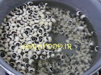 لوبیا رو خیس کنید یکی دو ساعت. البته لوبیا چشم بلبلی سریع میپزه پس اگه عجله داشتید میتونید بدون خیس کردن هم بپزید.