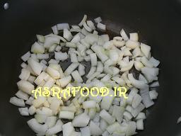 پیاز را خرد کرده و در روغن تفت دهید در حدی که فقط کمی نرم بشه.