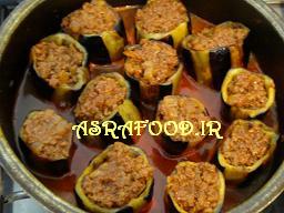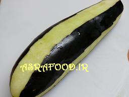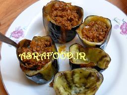 در روش اصلی یک برش طولی به بادمجان میدهند و مواد را داخل آن پر میکنند اما من به روشی که می بینید درست میکنم.