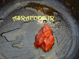 تو تابه ای که گنجایش همه بادمجانها رو داشته باشه کمی روغن بریزد و یک قاشق رب رو با روغن تفت بدید. یک استکان آب توش بریزد و بگذاریذ بجوش بیاد.