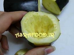 داخلش رو با قاشق یا چاقو خالی کنید طوری که اطرافش سوراخ نشه. روش نمک بپاشید و بگذارید بماند.
