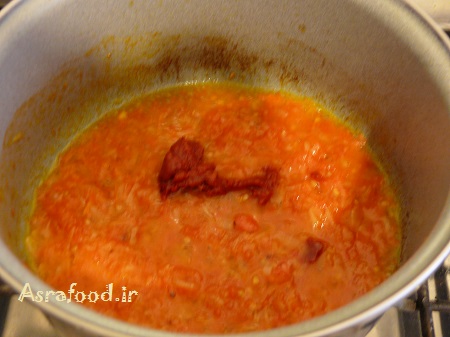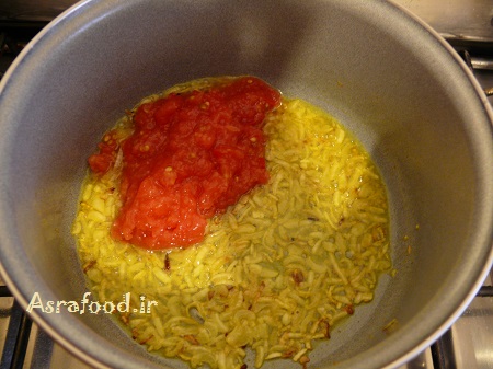 گوجه فرنگی را اضافه کنیدتا به همراه پیاز تفت بخوره.