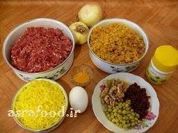 گوشت چرخ کرده (بهتر است مخلوطی از گوشت گوساله و گوسفندی باشد،دو برابر گوشت گوساله) 1 کیلو