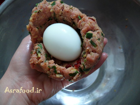 یکشون رو که میخواستیم همون موقع بخوریم بزرگ گرفتم و توش از بقیه مخلفات داخل کوفته و تخم مرغ آبپز گذاشتم.