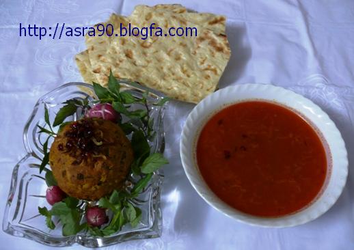 سبزی شامل تره و کمی مرزه تازه یا خشک ریز خرد شده 1 لیوان(یادم رفته توی عکس سبزی رو بگذارم)