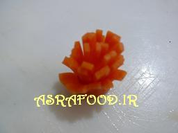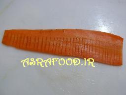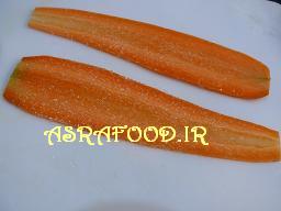 هویج ها رو پوست بگیرید و با استفاده از پوست کن یا رنده چیپس ورقه ورقه کنید.(من از رنده v استفاده کردم)