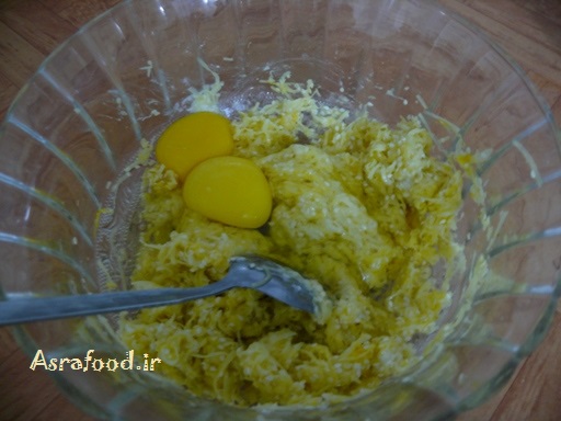 سیب زمینی و پیاز رو رنده ریز بکنید و آبش رو بگیرید.بقیه مواد رو باهاش مخلوط کنید، تخم مرغ ها رو هم اضافه کنید. من جعفری نداشتم و حذف کردم ولی با جعفری خوشمزه تر میشه.