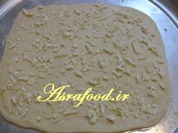 نصف پنیر رو روی خمیر بپاشید