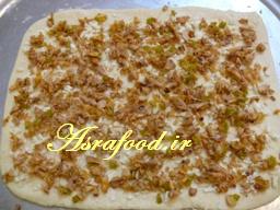 نصف مواد رو روی خمیر پخش کنید