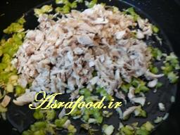 بعد مرغ رو اضافه کنید و کمی تفت بدید.