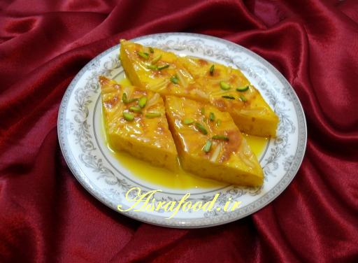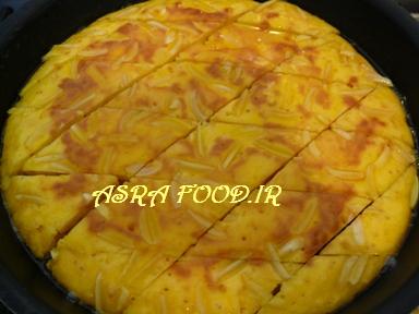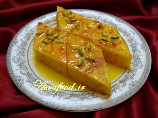 شیره داغ رو روی خاگینه که سرد شده بریزید.شیره باید به حدی باشه که روی خاگینه رو بگیره.