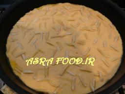 روی خاگینه رو خلال بادام بریزید.درب تابه رو بگذارید و اجازه بدید تا یک طرف خاگینه سرخ بشه.