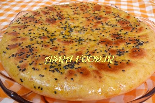 داخل تابه یا قالب مورد نظر رو چرب کنید و خمیر رو داخل تابه باز کنید روی ظرف را بپوشونید دوباره بیست دقیقه خمیر را استراحت بدید. بعد از این مدت روی نان را هر جور دوست داشتید شکل بندازید و شیر و زرده تخم مرغ و زعفران رو مخلوط کرده و روی نانها بمالید و روش کنجد بپاشید. بعد اگر خواستید در فر بپزید به مدت 20 الی 30 دقیقه با حرارت 180 درجه سانتیگراد.