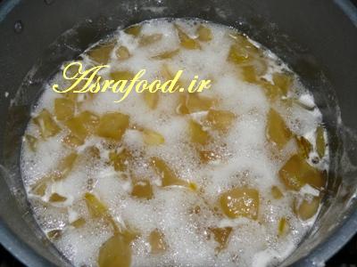 بعد بگذارید مربا باز هم بجوشه و مربا قوام بیاد این مرحله هم حدود نیم ساعت زمان میبره.