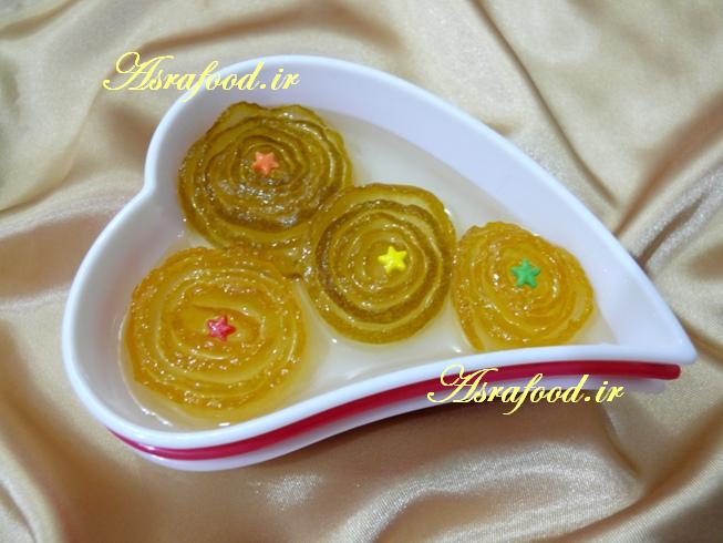 من دو مدل مربا از این بالنگها درست کردم، مقداریش رو پوست گرفتم و مربع خرد کردم ، این مدل واسه خوردن تو صبحانه مناسبه، مقداریش رو هم به صورت گل درست کردم که واسه سینی مربا خیلی خوبه.