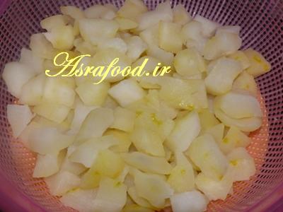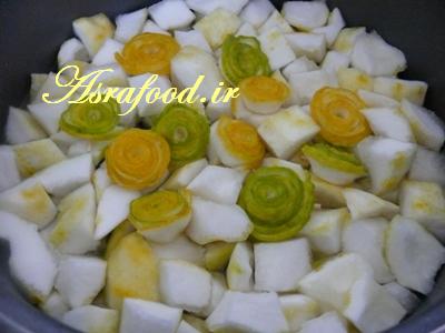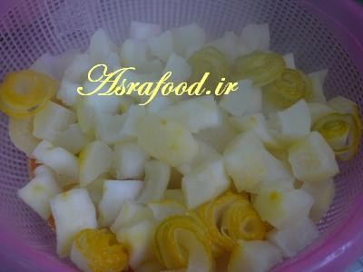 در مرحله آخر کمی هم بالنگها رو توی آبکش فشار بدید تا آبش خارج بشه.
