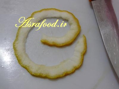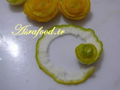 برای مدل گل، نیازی نیست پوست بالنگ رو بگیرید، یک نوار نازک از بالای بالنگ رو برش بزنید