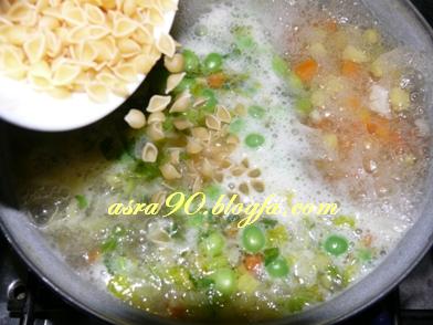 بعد از چند دقیقه پاستا رو اضافه کنید و بگذارید تا سوپ پخته بشه.