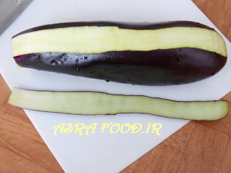 پوست بادمجانها رو بگیرید، از بادمجانهای بلند و کلفت استفاده کنید.