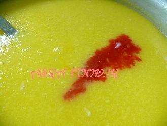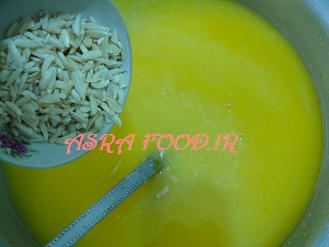 باز مقداری زعفران اضافه کنید ولی مقداریش رو نگه دارید تا آخر سر داخل شله زرد بریزیم.(واسه اینکه عطر زعفران غالب باشه)