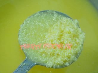 وقتی شله زرد جا افتاد باقی زعفران رو بریزید و خوب مخلوط کنید.