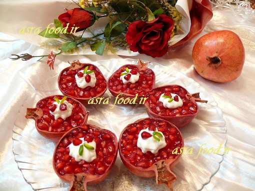 مواد لازم: برای هشت تا دسر یعنی چهار تا انار