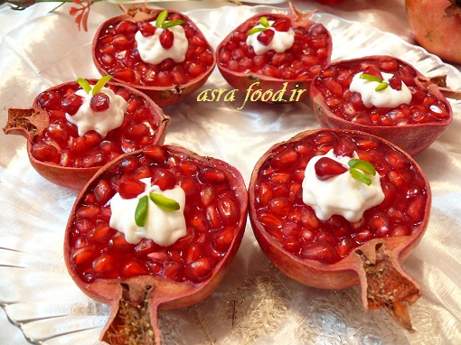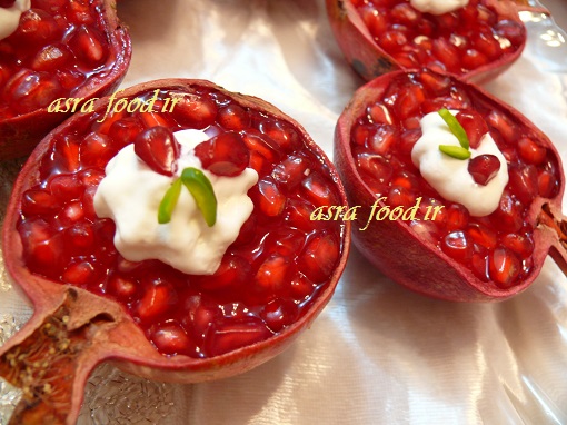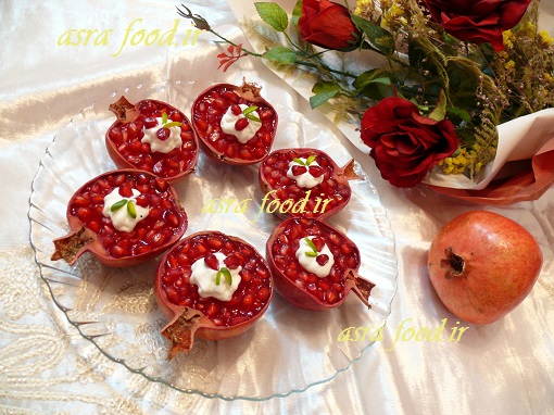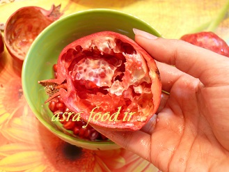 بهتره نصفه های انار رو توی یک پیاله یا فنجون بگذارید تا تکیه گاه داشته باشه.
