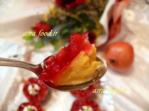 وقتی کاسترد خودش رو گرفت. دونه های انار رو روی کاسترد بریزید.