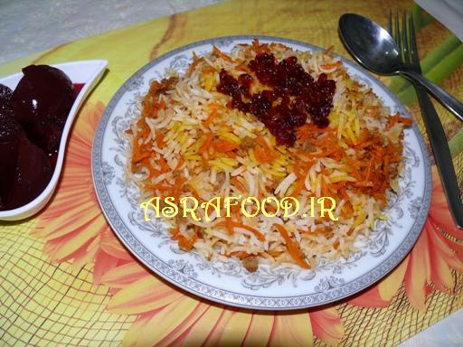 نکته: میتونید داخل مواد از زرشک هم استفاده کنید من ترجیح میدم زرشک رو با کمی کره و زعفران مخلوط کنم و داخل یک پیاله توی قابلمه برنج در حال دم کشیدن میگذارم تا زرشک نرم بشه بعد روی برنج رو با زرشک تزیین میکنم.