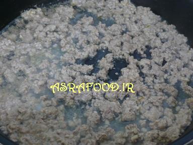 گوشت چرخ کرده رو با مقداری آب بپزید.