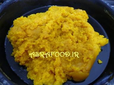 و باز هم اگه میخواهید حلوا رو با قیف بزنید فقط از روغن مایع استفاده کنید.