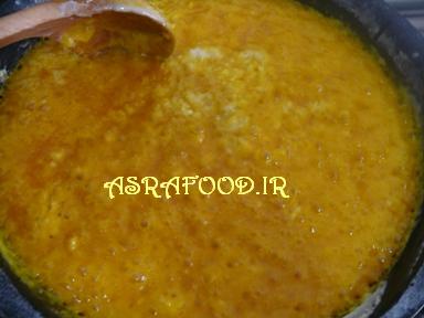 شعله رو خاموش کنید. با قاشق شربت رو به خورد حلوا بدید.