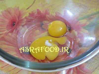 مایع تخم مرغ رو هم اضافه کنید و هم بزنید.