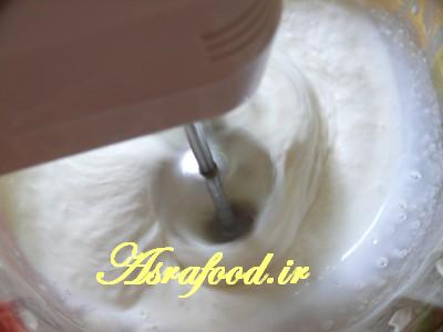 بعد با همزن حدود 8 دقیقه با همزن میزنیم.