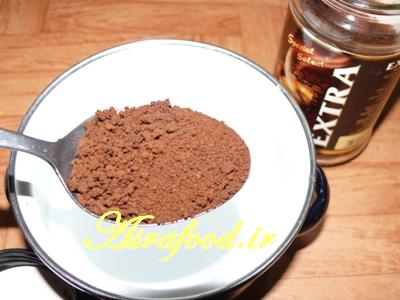 برای قهوه میتونید از قهوه اسپرسو استفاده کنید که چون میزان تلخی این قهوه زیاد طعم قهوه توی دسر خیلی ملموس خواهد شد میتونید از قهوه فرانسه یا قهوه ترک هم استفاده کنید که تلخی ملایم تری دارند، اگه به هر دلیلی این قهوه ها رو در دسترس نداشتید میتونید از نسکافه استفاده کنید، یک لیوان آب جوش رو داخل ظرف بریزید و یک قاشق سرپر قهوه رو داخل آب جوش حل کنید.