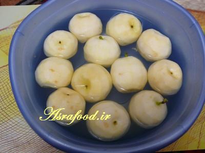 برای این توی آب سرکه یا آبلیمو میریزیم که سیبها سیاه نشن.