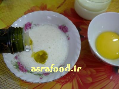 زرده رو از سفیده جدا کنید. سفیده تخم مرغ، ماست و روغن زیتون رو مخلوط کنید و با چنگال بزنید تا یکدست بشه.