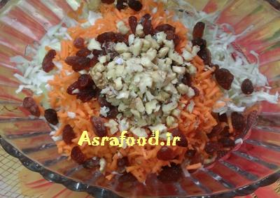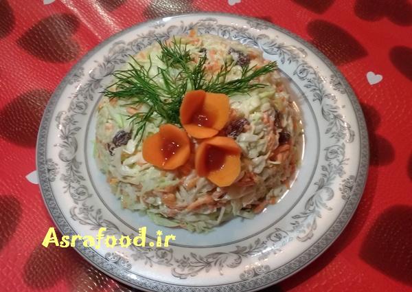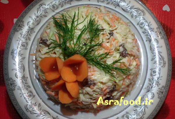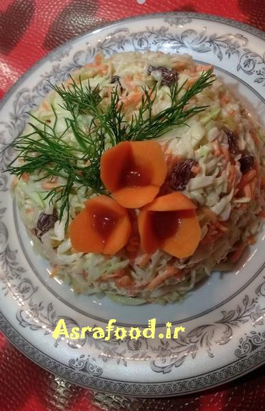 سالاد کلم یا کول اسلو یکی از سالاد های معروف دنیاست که رسپی های زیادی داره، ورژن ساده و اصلش فقط شامل کلم و هویج میشه که خیلی هم خوشمزه است، این مدلش کشمش و گردو هم داره.