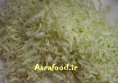 کلم رو خیلی ریز خرد کنید یا داخل غذاساز خرد کنید.