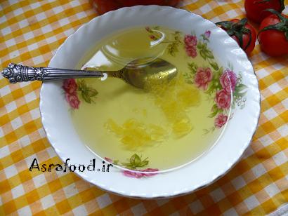 روش رو مخلوط نبات و آب که خنک شده پر کنید. لازم نیست نباتها کامل حل بشه بعد که داخل شیشه ریختیم حل میشه.