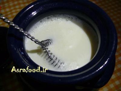 مایه رو داخل شیر بریزید و هم بزنید تا کامل مخلوط بشه.