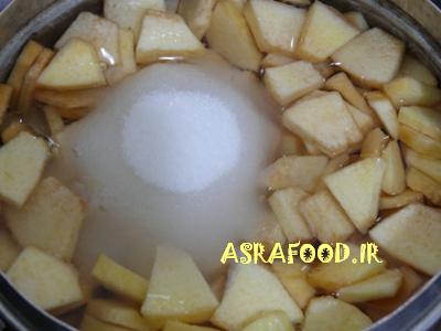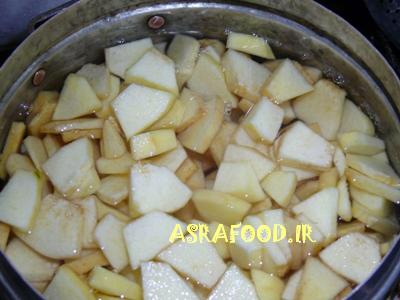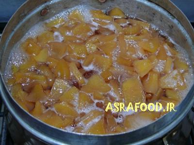 با حرارت ملایم بگذارید و در بسته بجوشه و به ها پخته بشه و شربت قوام بیاد.