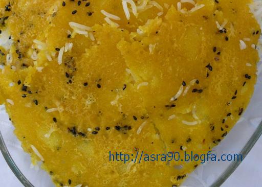نکته:میتونید زعفرون رو حذف کنید،یا کمی فلفل بریزید و میتونید کمی روی روغن، کنجد بپاشید و ته دیگ رو روش بریزید.خلاصه خیلی کارا میتونید بکنید.